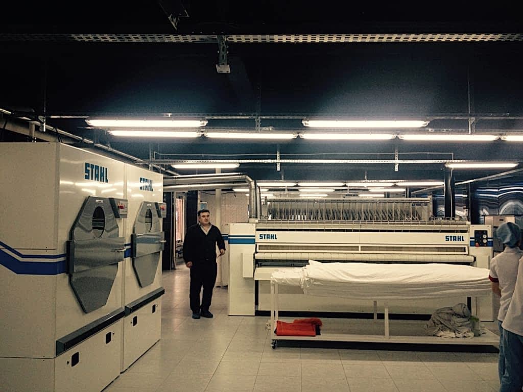 Azerbaycan'daki çamaşırhanemizde, son teknoloji makineler ve otomatik dozajlama sistemiyle çalışarak Diversey markası kimyasallarla mükemmel temizlik ve en yüksek verimliliği sağlıyoruz.